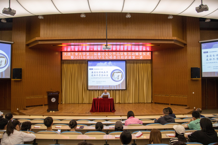 颁奖仪式后,学校纪委副书记梁旭光以《廉洁自律做表率、履职尽责勇担当》为题,为学生纪检委员作专题培训第一讲。在对学生进行廉洁教育的同时,进一步明确了学生纪检委员的监督职责和监督内容,细化监督反馈流程,畅通建言献策渠道,充分发挥学生纪检委员在主题教育专项整治工作中的监督作用,做到监督下沉,推动机关作风建设,切实解决师生群众的急难愁盼问题,涵养学校优良校风、教风、学风。